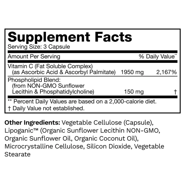 Liposomal Vitamin C Complex: Ascorbyl Palmitate, Ascorbyl Oleate, Cetyl Ascorbate, Sunflower Lecithin, Phophatidylcholine